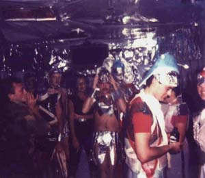 content. Typically, one night I thought I'd clear my head of murk and mire by visiting a crew party on the aft deck. As I came down the stairs, "The Memos," a new wave incarnation of my very own society dance band, were blasting away with some serious B-52s. Bearded Viking types were stumbling over empty bottles of Frydenlund and dancing spastically with their countrywomen, bouncing and sliding on the deck, which was awash with spray and spilled gloegg. A pock-faced Portuguese was threatening to throw an American twice his size overboard. Dear, jolly Birgit was barging through the crush of pleasure-seekers with beers for the band. Lis didn't see me. She was flirting rather primitively with some yo-yo passenger from Corpus Christi who'd followed her down from the bar, obviously uninformed about Norwegian Law, which says that can't happen. Bill's guitar was screaming when suddenly there was a gust of cold wind, and a real heap of spray doused the dancers. A few ran for cover, but the momentum of the majority was strong, and they kept right on dancing, maybe because it was nearly 1 AM and everyone wanted to get some last kicks in before the Law decreed an end to this grand debauch.