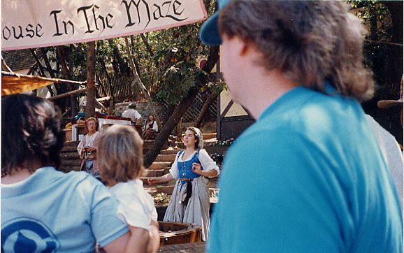 | Mouse in the Maze Maren hawking the game "Mouse In The Maze" at the Northern CA Renaissance Faire, 1990. |
